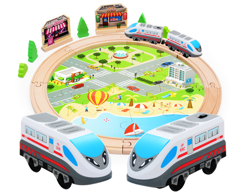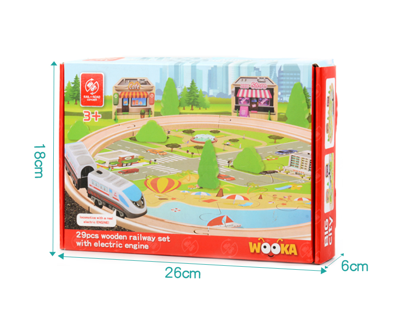产品名称:29pcs wooden raiway set with electric engine